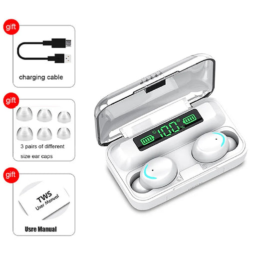 Audífonos Inalámbricos TWS F9™ Bluetooth 5.2 Negro y Blanco 2x1